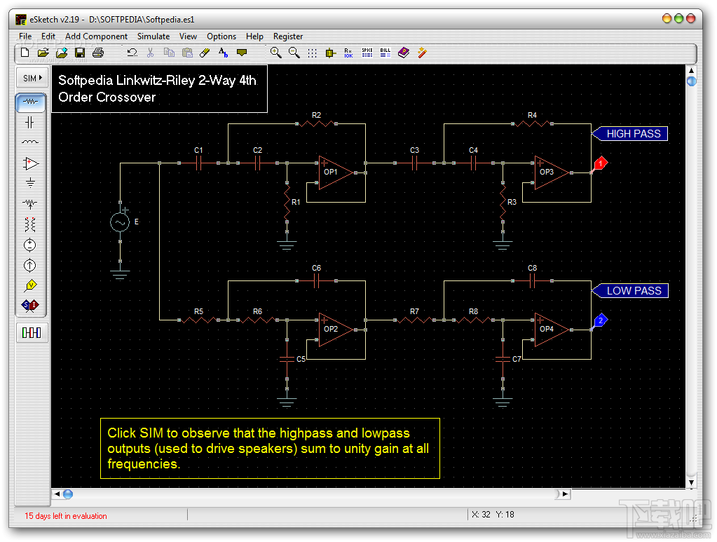 eSketch PRO是一个线性电路模拟器,它具有许多的模拟功能,比如说蒙特卡洛分析法、参数清除分析法、Pole-Zero计算、多点电压测量、输入阻抗、实际与理想的工作电流模型、相位、灵敏度等等。该软件还具有许多的电路模型.