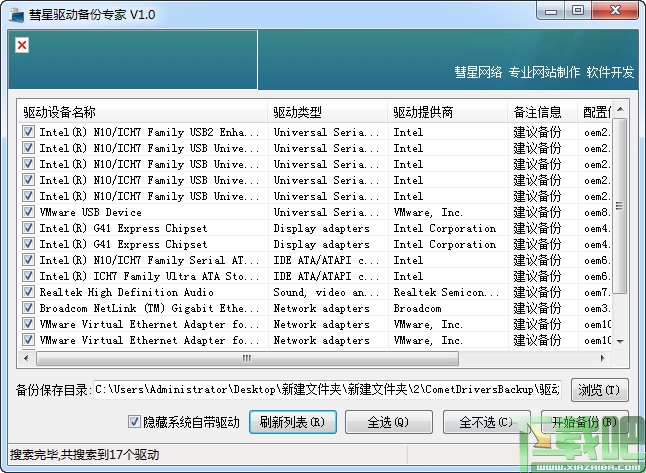 “彗星驱动备份专家”是系统支持和管理人员的得力助手,它为用户提供了备份电脑中目前已安装的新驱动程序的功能。在重装电脑系统前,您可以先使用这款工具软件将电脑中的驱动程序备份到您指定的位置,待系统重装执行到硬件安装这一步骤时,您可以将Windows安装程序搜索驱动的路径指向您备份的驱动程序所在路径,即可快速完成各种硬件设备的驱动安装工作,这样,可以为您节省许多程序安装的时间,同时也为您省去了四处找驱动盘、频繁更换驱动光盘的麻烦,达到快速“克隆”驱动程序的目的。