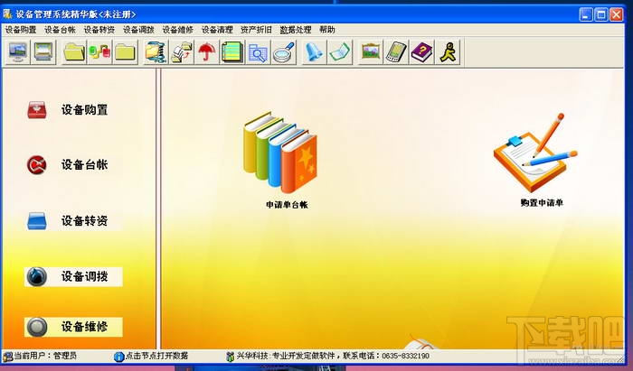 《兴华设备管理系统精华版》是一款我公司专门针对现代化办公开发的实用管理系统,本系统是对设备购置;设备台帐管理;设备转资;设备调拔;设备维修管理;设备清理;资产折旧管理等信息进行科学分类全面管理的系统。 《兴华设备管理系统精华版》主要功能包括: 一.设备购置.(1.申请单台帐 2.购置申请)。 二.设备台帐管理. (1.设备台帐. 2.设备更改)。 三.设备转资. (1.设备转资申请. 2.设备转资. 3.转资备忘)。 四.设备调拨. (1.调拨申报. 2.设备调拨. 3.调拨单台帐. 4.调拨结束通知单)。 五.设备维修管理.( 1.设备维修. 2.设备维修项目)。 六.设备清理.(1.设备报废申报. 2.设备报废审批. 3.报废台帐)。 七.资产折旧管理. (1.资产折旧. 2.折旧参数设置)。 如果您对我们的这款软件有特殊需求或修改建议的话,可以联系我们,我们公司的软件均具有二次开发功能,我们公司的软件产品独具的二次开发功能可以使软件永不过时,随着客户业务的拓展,软件功能可以随其他不断变化功能,兴华软件开发服务中心为您打造最适合于您的管理软件。