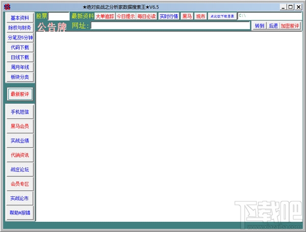 1.专业为股票软件“分析家提供日线、周线、月线、年线数据、5分钟线、分时线、个股资料、除权财务数据、板块分类、股票代码数据。 2.可看实时行情、今日提示、每日必读、指定个股信息追踪、机构观市、即时解盘、机构黑马。 3.观看绝对实战先生的【实时股评】,只要你机器上的本软件处于运行状态,每当我发出新的股评,软件就会自动弹出窗口告知我的股评内容。比QQ的即时通讯还要先进快捷。