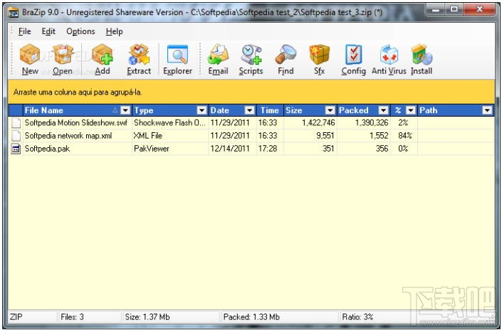 BraZip是一个拥有非常漂亮界面的压缩/解压缩程序!支持包括Zip,Arj,Cab,Ace,Lha,Lzh,Arc,Ha,Zoo,Rar,Bh,Pak,Jar,GZip and Tar在内的多种常用压缩格式!程序比较大的特色是支持备份脚本技术(Backup Scripts),这种技术可以帮助你轻松定时备份重要的数据!
