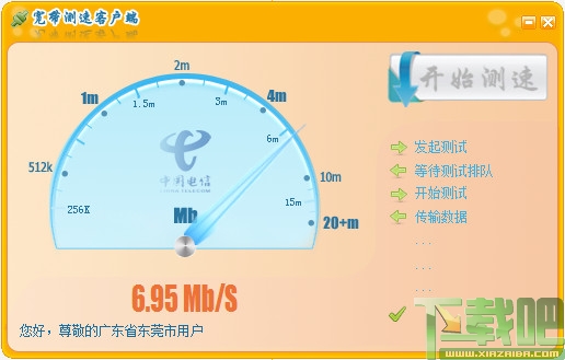 宽带测试客户端(SpeedTest)是中国电信广东分公司官方出品的一款网速测试工具。通过这个工具可以测试你用的宽带速度,核对是否达到了运营商所给出的速度。