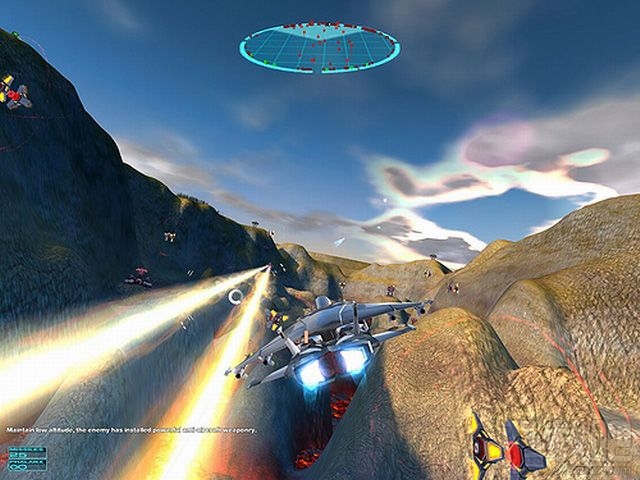 尽管《变形金刚:重拳出击》的译名有些牵强,但是作为首款运用nVIDIA Cg技术,并支持DirectX 9的游戏,起码它的画面是无可挑剔的。游戏的核心内容是由玩家操控可变形的飞行器,在不同的地形条件下与敌人作战,并在最快的时间内将之打成碎片。