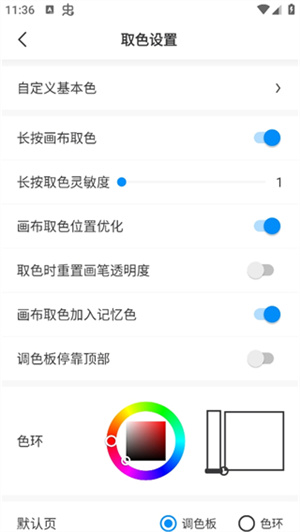 3、功能齐全的取色设置,满足多种绘画习惯。