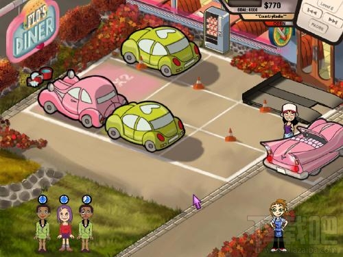 帮助美女停车场Flo的新朋友,一名叫Karma的女孩在餐厅外经营全新的停车场事业吧!