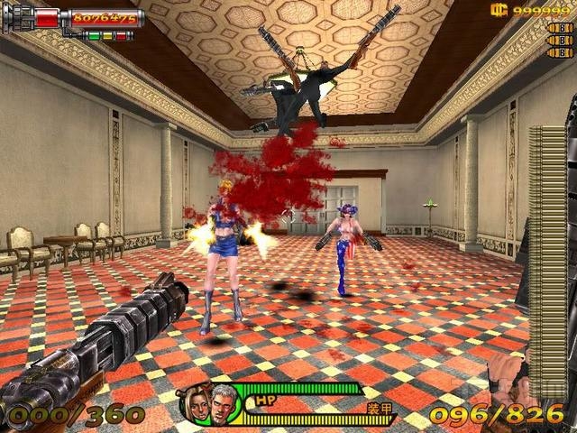 《喋血双煞》是由国外 Delphieye 使用 Serious Same Engine (重装武力引擎)、耗时两年所研发出来的搞笑暴力第一人称射击游戏。除了趣味的故事情节、夸张的武器设定、华丽场景及空中连续射击技外,当然还少不了一路上的辣妹相随。 按照大多数 FPS 游戏的设定,玩家必须了某种特定的原因而去消灭大批敌人,《喋血双煞》也不例外。故事从一对赏金猎人夫妇身上开始,丈夫 Victor Chopski 和妻子 Maria 的爱子被恶棍 Golden Bell 绑架,他们也从此展开一段惊险的救援过程。 游戏操作相当简单易上手,玩家可以使用标准武器如机关枪、散弹猎枪、火箭筒等进行攻击,也可以将这些武器进行组合搭配,来进行连续攻击或合击,系统需求相对之下并不算高,在现在充斥着严肃和高配备需求的射击游戏中,提供玩家另一种不同的选择。