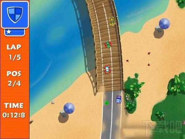 画面左上角显示的为圈数,左下角是目前排名,而右上角显示所花费的时间,右下角则是地图。游戏为键盘控制,键位设置简单,总体来说上手不难,但是想控制完美就需要多练习啦。