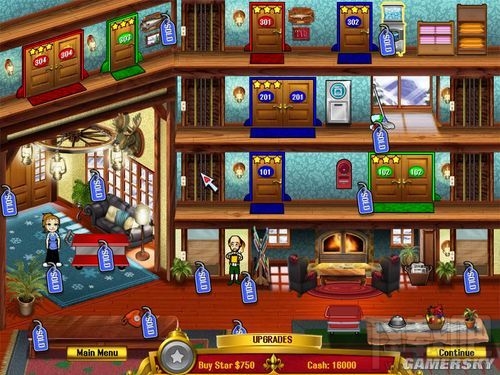 控制FLO帮助客人运送行李,完成客房服务,并提供额外的毛巾和毛毯。游戏依旧采用了经典的关卡形式,包括5个场景和50个耐玩的关卡设计,以及GOAL和EXPERT过关评价。玩家可用累积的资金对店内装潢,人物速度,服务设施等90余项物品进行购买升级。