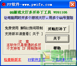 注意:qq游戏多开器(QQ游戏大厅多开补丁)只是普通的多开,不支持有IP限制的房间;要进有IP限制的房间,请使用代理,具体请查阅资料,QQ游戏大厅多开多房间补丁,使一台电脑不受限制地开任意多个游戏大厅,登陆多个QQ号进行游戏,升级、刷分必备。