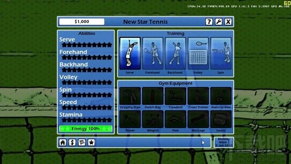 网球新星不同于其他任何网球游戏,而是重点体现了年轻球手成长的职业生涯,你将作为一个16岁的新人,到世界各地的比赛。当你获得积分,你会登上排名榜,还可以赢得赞助合同。还有卡丁车,飞镖,甚至购买训练赛马,等很多内置小游戏。