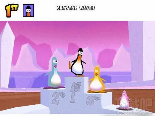 企鹅赛车游戏中包括6条风景各异的赛道,以及不同颜色和属性的企鹅角色,需要玩家获得第一名,通过解锁来获得。