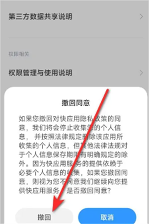 5、在弹出的窗口中点击【撤回】按钮即可关闭服务框架。