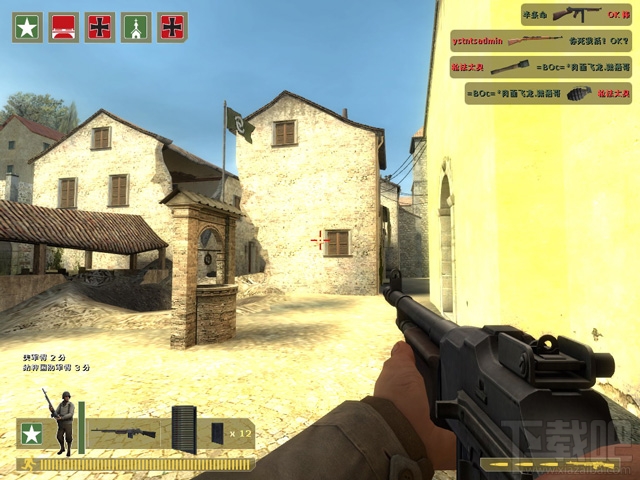 2.区域夺取指示器——让你了解你处于己方控制区,站在夺取区将使这个区域中的旗帜慢慢改变成己方颜色,一些区域的占领要求至少超过一个人来夺取。当你携带着TNT并且靠近一个可炸毁的目标时,将会显示一个安置TNT的图标,只要你靠近爆炸点TNT就会自动安放好。要注意的是应该尽快离开并提醒队友远离爆炸点,否则TNT可是不分敌我谁都炸的哟。