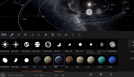 -选择感兴趣的行星、行星环等内容,全面的调节和改变,并尝试各种不同方式的组合和模拟设计。