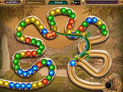 本作的玩法非常有特色,打破了以往同类游戏规则,彩球不再是通过发射来添加,玩家可以控制着神龙任意活动,通过换取彩球来进行消除。游戏道具不仅拥有常见的暂停、后退等,还可以召唤小龙使出更神奇的效果哦。