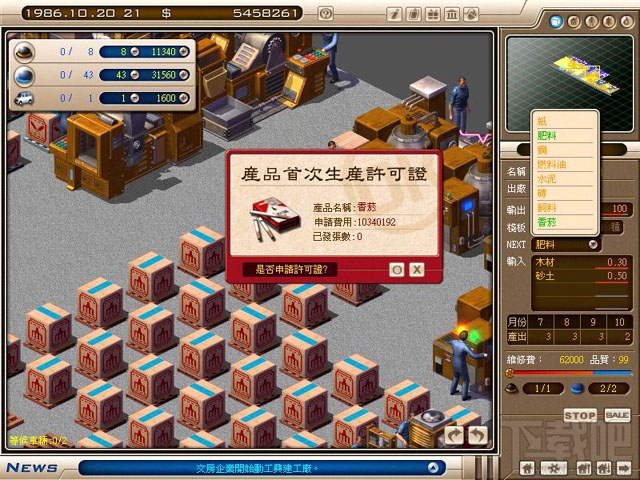 你必须随时掌握业界的新信息,投资一定的人力物力下去研发机器和新商品的制作方法,万一对手先研发出来,你也可以购买其它厂商开发的商品再加以组合之后,也能创造出自己心目中的理想产品。玩家不但可以享受成本规划的策略性和创造发展的成就感,还可尽情探索由民生百业交织而成的庞大商业体系。游戏中的时间从公元1960年开始,玩家可以领先时代潮流创造出像电视***服饰、舒适房车与高级家电等划时代的产品,藉由提升市场占有率而成为领导品牌!