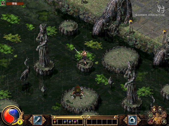 在战斗中,你可以直接操纵主角。刀剑封魔录不像其它ARPG游戏那样,你仅能支配角色辨认攻击对象,或是用鼠标点击攻击目标便万事大吉。刀剑提供给你给完善的控制系统,你可以决定各种攻击类型:戳刺、猛砍、剁削、跳劈和形形色色的功夫技;而且你仍可以控制战斗中的闪躲、阻挡等动作。这简直就像是一款拳皇和暗黑的经典组合。