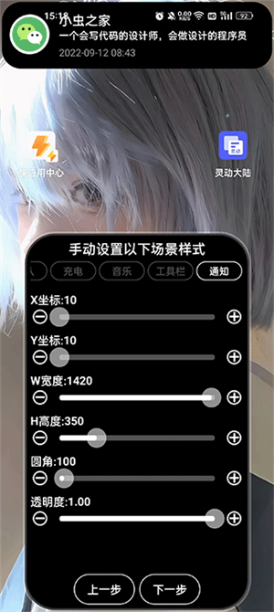 2、设置好充电、音乐、工具栏、通知的样式大小。