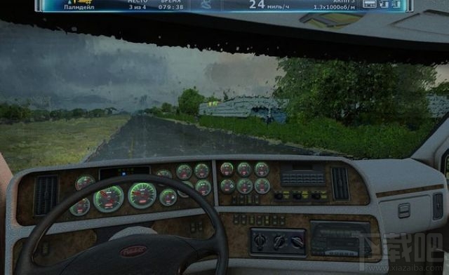 天气效果是游戏的一大亮点,真实模拟了西部一年四季的不同气候变化,包括:晴、阴、雾、雨、雪、霜冻等,记得官方曾经说过有冰雹呢,但暂时没发现有。特别是雨雪天,湿透后的路面那种效果绝对一流,雨水滴在挡风玻璃上,雨刮的效果那才叫绝呢!(可以配合相关优化补丁,效果更佳。)游戏有各地天气查询系统,而且还有未来几天的天气预报,让你了随时了解各地天气变化。
