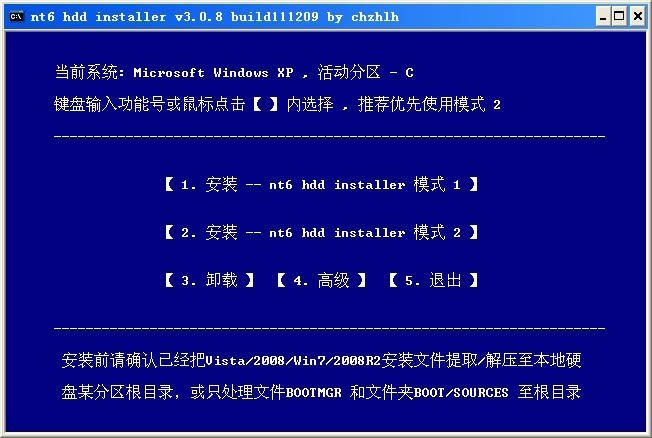 nt6 hdd installer超级简单的硬盘安装方法,不需要任何CMD命令! 原系统(2000/XP/2003/VISTA/2008/WIN7)和要新装的WIN7系统都没有32位/64位限制;装成单系统还是多系统也没有限制