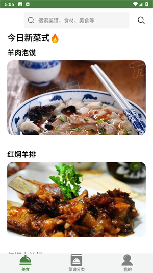 1、打开软件,直接进入美食,可查看超多的菜品。