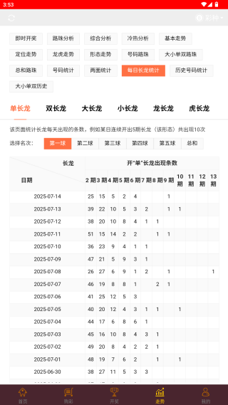 3、详尽的走势图分析,提供大量的数据,最多可以查看100期结果,有利于用户更好的分析预测,对于下注会更有把握;