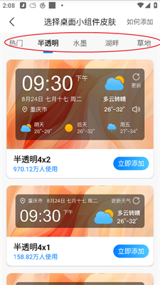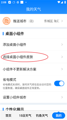1、进入【我的天气】界面找到【选择桌面小组件皮肤】。