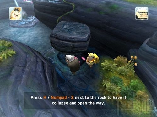 《飞屋环游记》游戏简介Disney-Pixar UP是由迪士尼同名电影《飞屋环游记》改编,讲述了卡尔和他的小伙伴拉塞尔在南美一片无人丛林中的奇异冒险旅程,通过把大量的氦气球带起了房子,卡尔飞向了天空,正当他刚刚在安乐椅上绘制出了穿越南方的路线图时,房子上升到了10000英 根据同名动画改编的游戏画风清新亮丽,难度不高,是一款适合两人同乐的冒险游戏,总计有11关,过程提示都很明确,3D人物角色描绘逼真,动作流畅柔和,视角也很便于操作。 充满想象的童话风格背景音乐配合真实场景的音乐效果,让玩家仿佛身临其境,游戏在音乐表现方面制作值得赞赏。