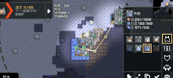 资源采集:游戏初期,优先采集铜和铅作为基础资源,煤也是重要资源,用于发电。随着游戏进展,逐步升级发电设施,从燃烧发电机过渡到涡轮发电机、钍反应堆和冲击发电机。