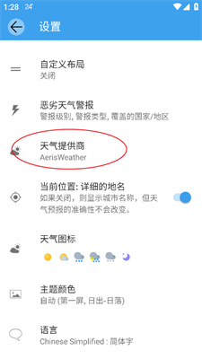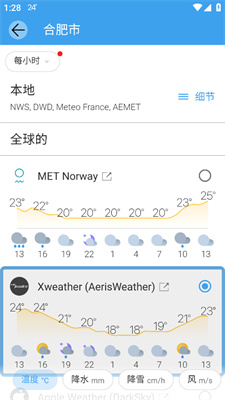 5、或在细节中打开各地的天气提供商。
