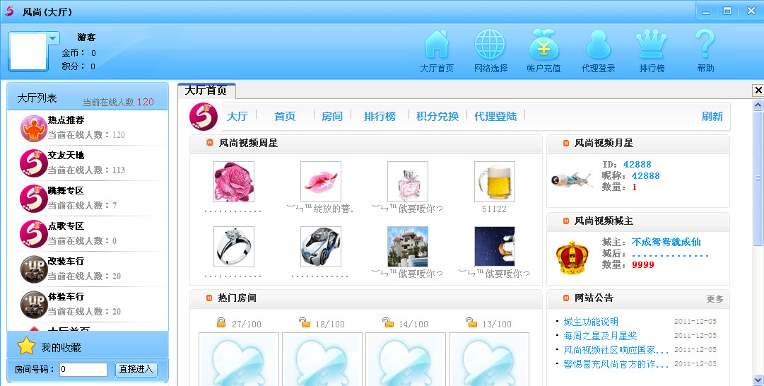 风尚视频集视频聊天、游戏、互动娱乐与一体的大型综合娱乐聊天平台。平台汇聚大量明星、音乐和美女主持,更带来互动交友和视频游戏功能,给年轻的网友们带来边说,边唱,边看,边玩,边交友的全新网络生活。