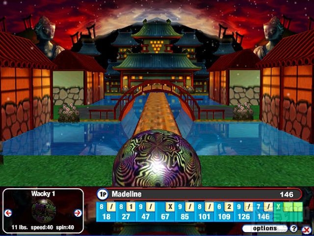 游戏全程用鼠标进行,首先可以选择比赛的场地,可以选择的场地有许多种,如普通保龄球馆,或星际场地等等。再来玩家选保龄球(有多款不同磅数及不同图案的球可选择。),再选择摆球的位置,然后按保龄球,鼠标稍微向后拉,便可以打出保龄球。画面下方有计分板,玩家可以清楚知道目前所得的分数。
