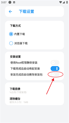 3、最后打开【安装完成后自动删除安装包】的按钮就行了。