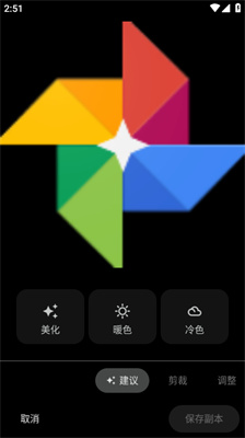 4、软件提供基础的编辑功能啦!美化,暖色,冷色,其他的效果你看着修改吧!