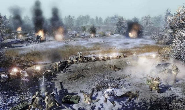 特别地要说一下这款游戏做得很不错的一个战场(玩家们千万不要错过)——在波兰那几场清剿德国兵的战争被刻画得真的是太神奇了!!白雪皑皑的城市,德国兵像狗一样哆嗦在街头巷尾,而我们操作的伟大苏联红军与之展开了激烈巷战,正如一切有点意思的巷战,枪声和炮击在空旷的马路上回荡,宛如一曲第三帝国即将消逝的悲歌。