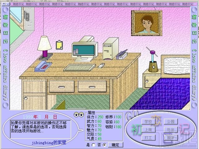 此游戏为一个小型恋爱游戏,是通过吸取网上多种小型恋爱游戏的主要特征而开发的。