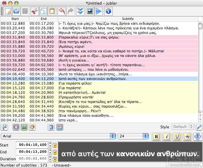 Jubler是一款基于Java的强大的字幕编辑工具,支持对每段字幕锁定开始时间、结束时间、或者持续时间,再对其他变量进行编辑,并且支持对整个字幕文件的分割、合并、和重排序,还可以自动调用 MPlayer 预览修改后的字幕效果。