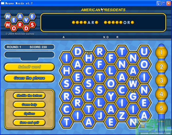 字母串连(Weave Words)一个单词小游戏。游戏中你需要将所给的字母串连成单词,再跟据单词中的字母猜测隐藏的短语。游戏中有超过3000个短语迷题和3种游戏模式。由于没有提示,这类游戏,还是交给英语强人吧……