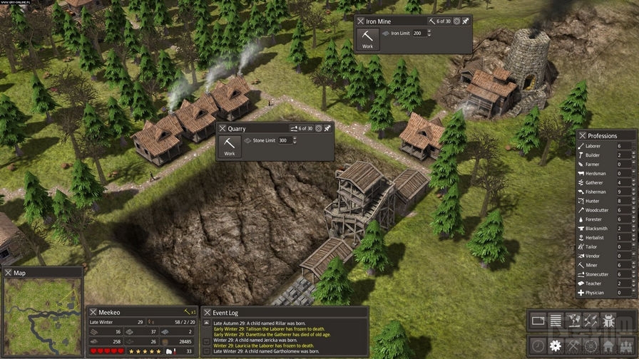 玩家就是保证这群放逐者活着,让他们工作,建立城市,人口不断增长,最终延续下去。冬天的生存是玩家面临的比较大挑战之一,你的裁缝可以做衣服,你可以建造房屋和烧柴。不过砍伐森林会减少鹿的数量,影响狩猎。虽然你可以种植新树的森林,但许多疾病的治疗,只能在已经存在了几十年的森林发现。在同一个地方循环的发展农业,会破坏土壤。流浪的游牧民可以加入你的城镇人口增长迅速,但会带来一些外来的疾病。