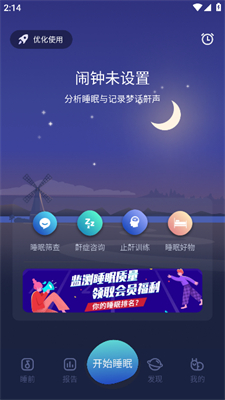 3、睡觉的时候点击开始睡眠即可监测睡眠,还有睡眠筛查、鼾症咨询等服务。