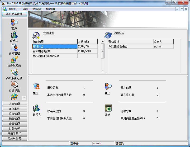 StarCRM进销存客户关系管理系统方便的管理您的客户和联系人,并制定行动计划。强大的报表功能,强大的数据导出功能(支持十几种常见格式),绝对是您管理客户资料的好助手。StarCRM进销存客户关系管理系统适用于个人及小型企业的客户管理、进、销、存、财管理,可能强大得出乎你的想象。