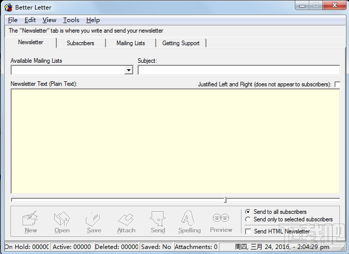 这是一个可以使用你现有的普通E-Mail帐号发送邮件列表的软件,包括了拼写检查、自动删除、打印、不限数量的Mail list。它可以通过你的邮件服务提供商的服务器将邮件列表发送给接收者,或是根本无需通过邮件服务器直接发送给接收者。
