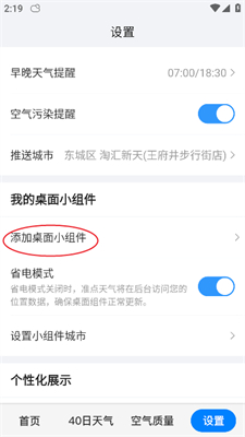 2、在我的桌面小组件栏目下找到【添加桌面小组件】。