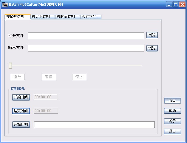Batch Mp3Cutter,功能强大的批量Mp3文件切割与合并软件。用户可以根据Mp3文件的大小,时间以及帧的方式进行任意切割,还可以将切割后的小文件成合并切割前的完整状态。