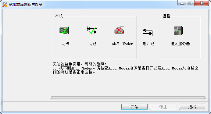 宽带故障检测工具-【网络检测好助手】一个提取出来的小工具,用于个人宽带故障快速检测,可以检测连接网络的一切设备故障,如网卡,网线,ADSL Mmodem,电话线以及与远程服务器的连接!故障检测比较明晰!