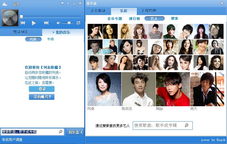 巨鲸音乐盒一款高音质的绿色免费音乐播放软件。采用先进的P2P软件下载技术,依托top100海量音乐库,人性化的界面设计,便捷的专辑分类,为您提供集播放,收藏,下载,音乐推荐为一体的全方位音乐体验服务。
