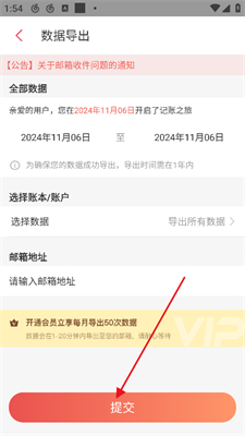 3、选择账本、账户、邮箱地址并提交即可导出数据了。