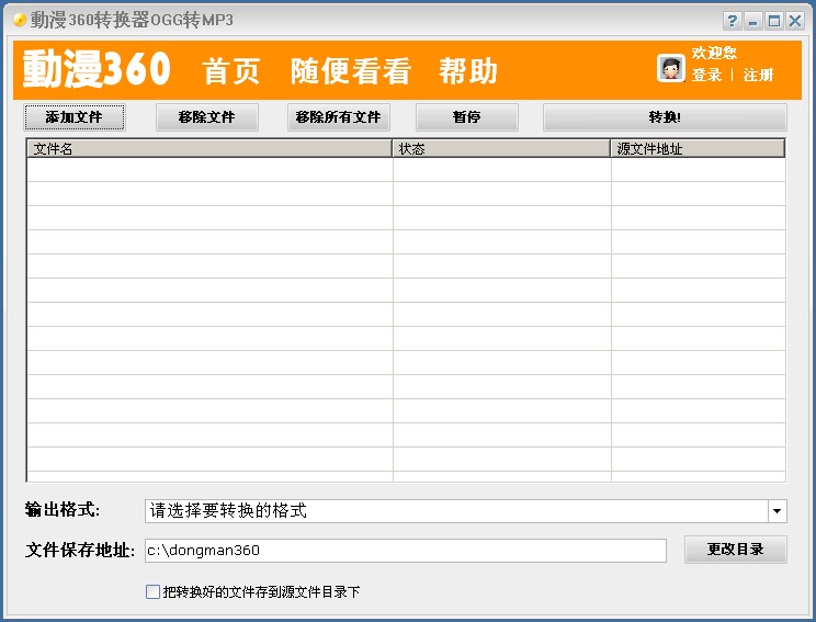 动漫360转换器OGG转MP3功能强大的音频转换器。可将动漫迷喜欢的OGG转换成常见的MP3格式。能将把OGG装到mp3里去听,先进的技术对电脑配置要求低,优化多线程处理,确保漫画基本保持原效果。如果不介意速度,您甚至可以边转换边游戏。软件体积小,非常容易的在朋友之间互传,而且完全授权,不收任何费用。