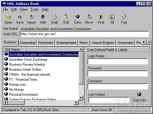 URL Address Book是一款好用的书签及E-MAIL通讯录整理工具,它可将书签及E-MAIL名单建立成一个个的文件,且每个文件还可分门别类,可预设任何种浏览器、当您使用书签时只需点选书签即可打开浏览器浏览网站或打开E-MAIL、管理上相当方便、尤其在分类、移动、编辑皆相当的容易管理,当然它也可将正在浏览的网站直接加入。启动时会常驻于System Tray上、点选一下即可打开使用。