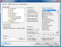 一套可将硬盘中的资料夹及文件名称打印出来的工具,它除可打印文件名外亦可选项的将文件资讯如大小、日期、属性等加入打印,也可依日期、大小、文件名等来排序打印,当然也可选择不打印而存成文字文件(*.TXT)。
